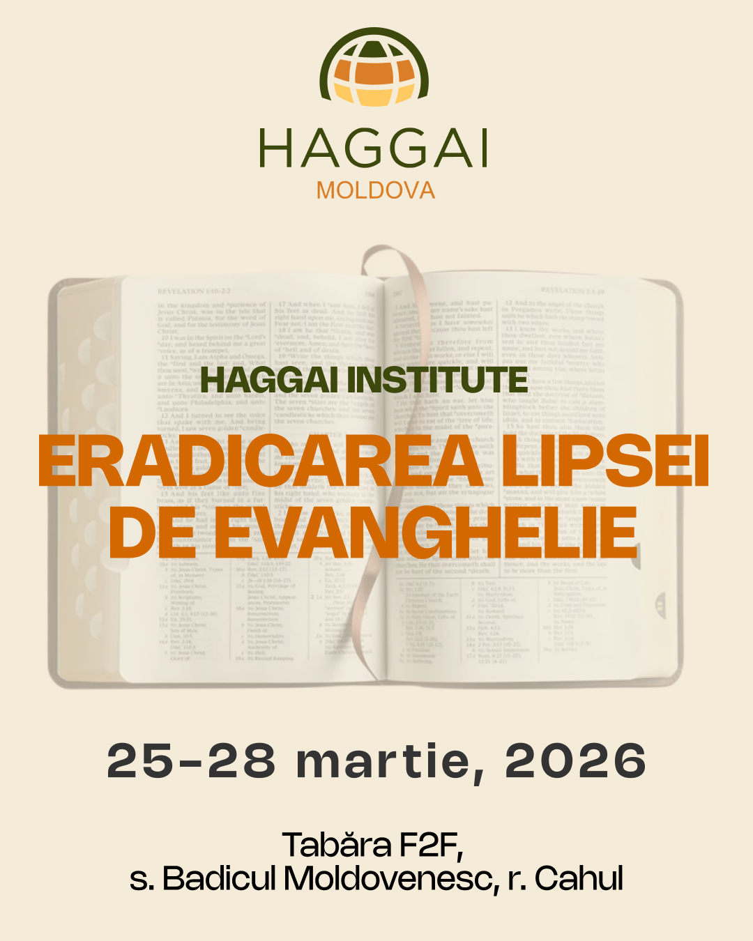 Te invităm la Tabăra F2F – Emanuel, Cahul, ca împreună cu facilitatorii Haggai Moldova să beneficiezi de trei zile de părtășie autentică, echipare practică și inspirație spirituală, dedicate celor care doresc să ducă Evanghelia mai departe cu pasiune, claritate și putere.